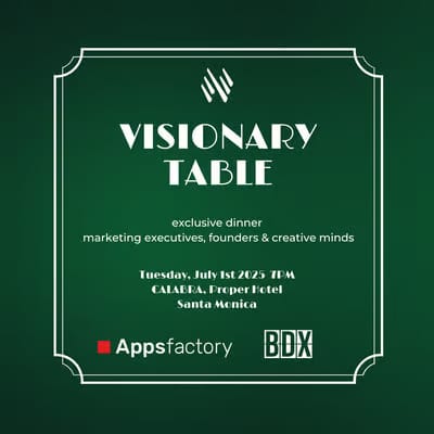 Join us for an exclusive, invite-only dinner uniting founders, CMOs, and creative minds. In partnership with Appsfactory, we’re creating space for real conversations and lasting connections.